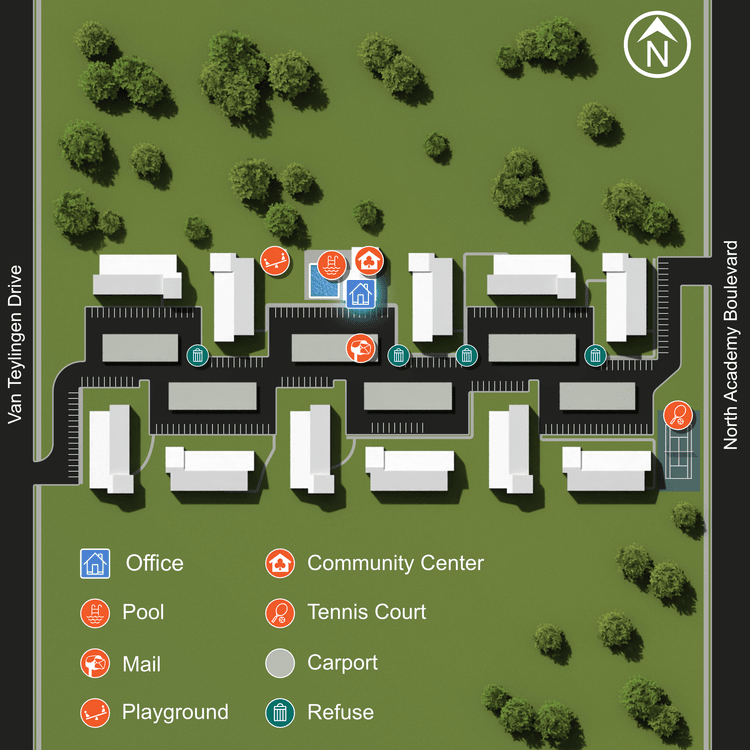 Select a floor plan or bedroom count to view those units on the overhead view on the site map. If you need assistance finding a unit in a specific location please call us at 719-574-1212 TTY: 711.